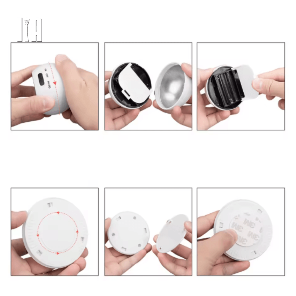 Modo de usar: Fixe a base da lâmpada na superfície usando a fita adesiva Insira as baterias na lâmpada Ligue no modo de sua escolha (manualmente ou via sensor) Insira a lâmpada na base